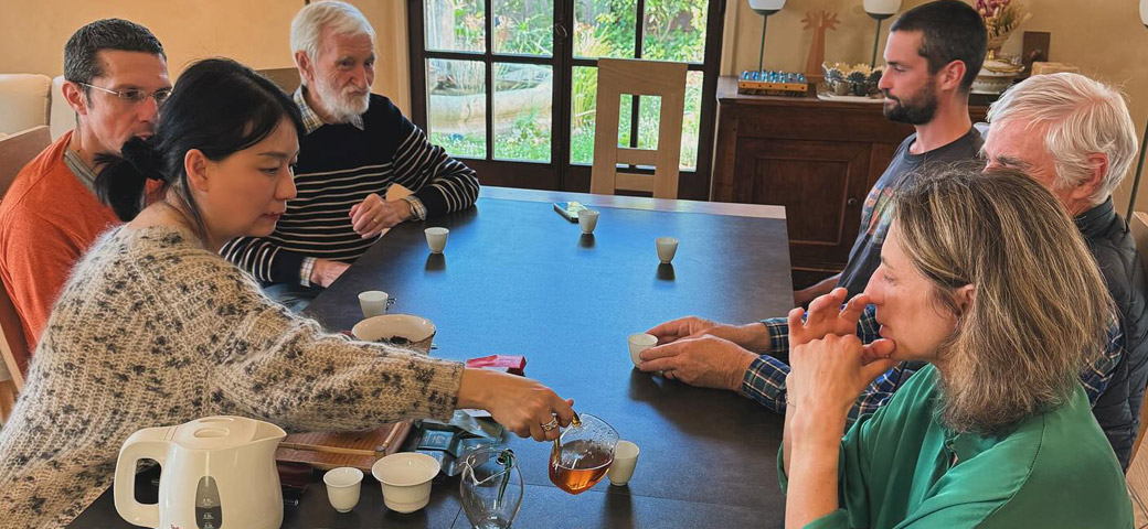 Dégustation Langage du thé MasterclassC’est toujours un immense plaisir de rendre visite à Daniel Coulon et sa famille à Châteauneuf du Pape. Superbe dégustation en cave du millésime 2021 et … masterclass Thés de Roches accompagnée de jolis flacons ….Grand moment de partage et d’emotion. Mille mercis les amis !
